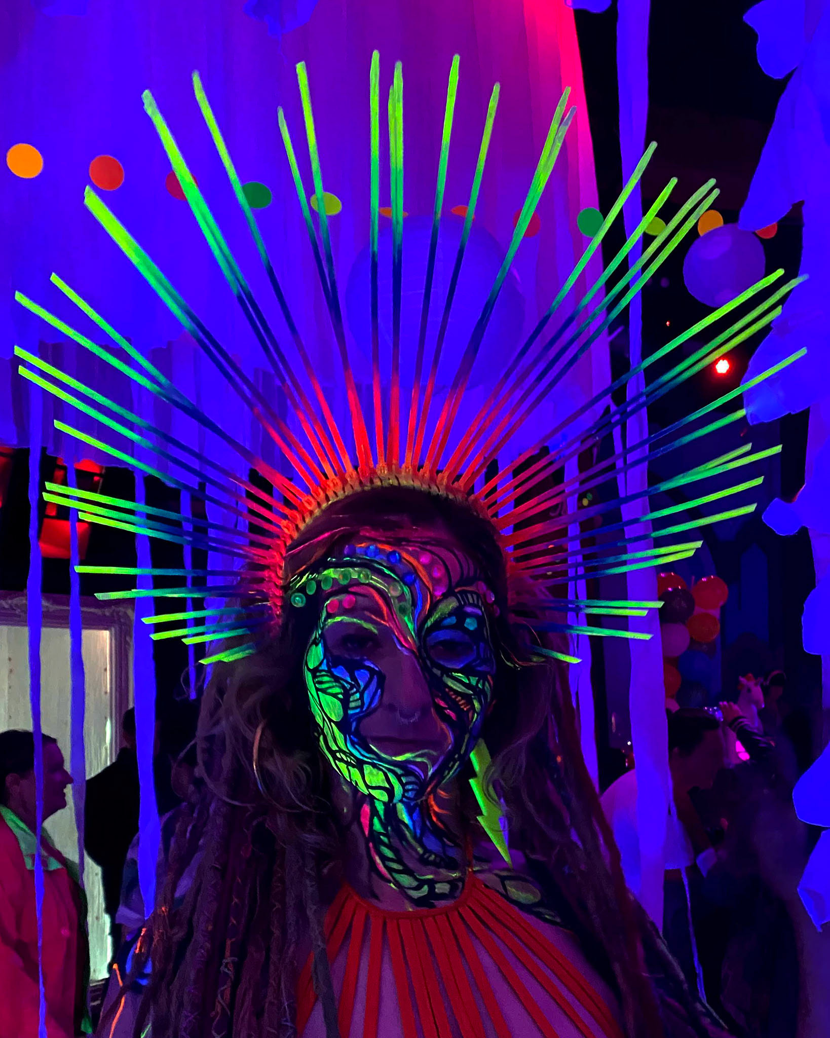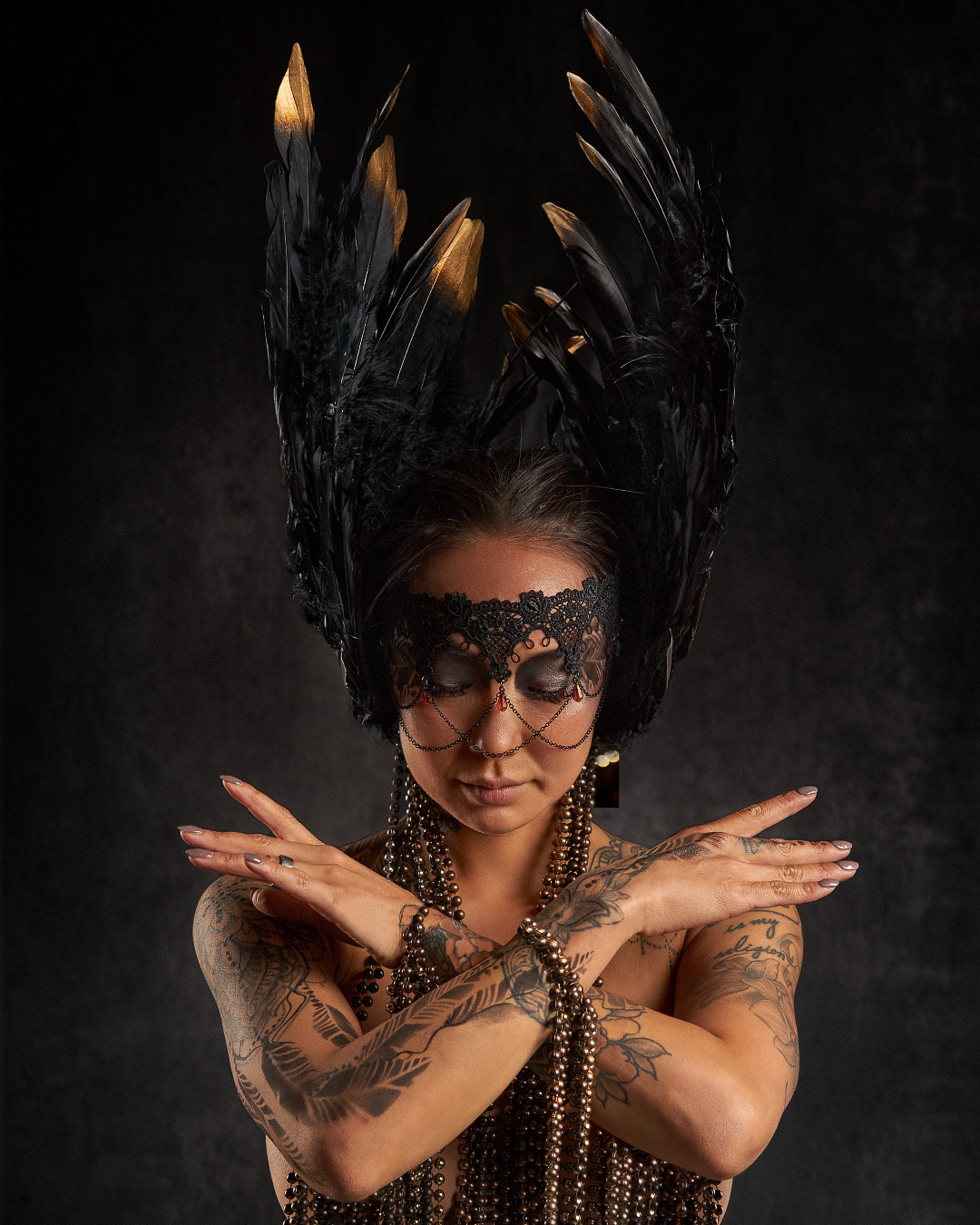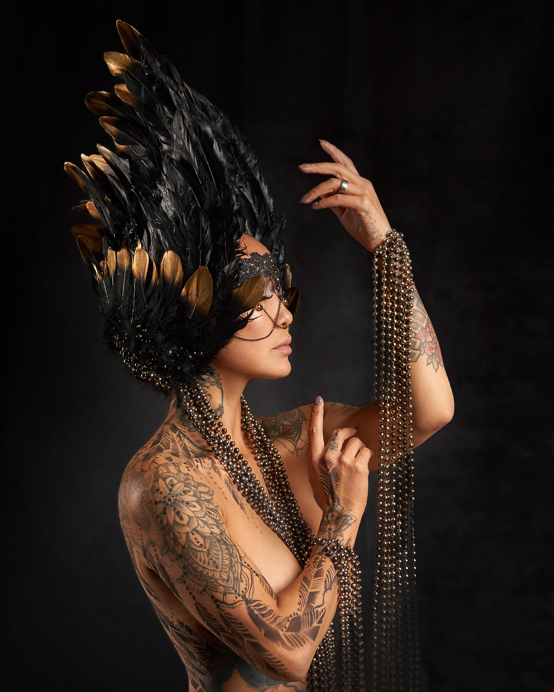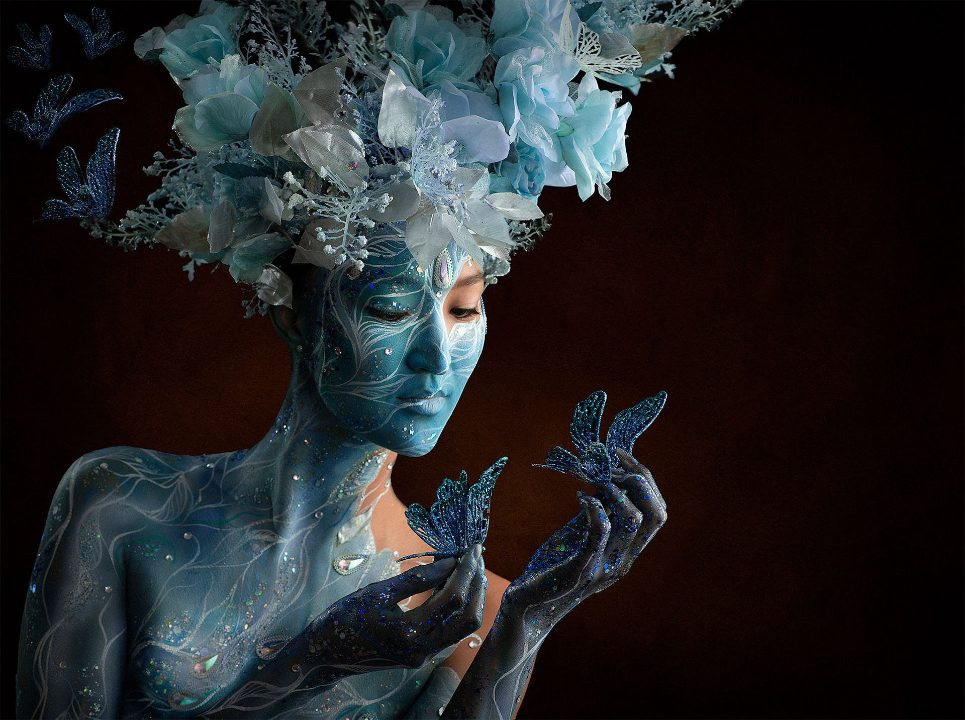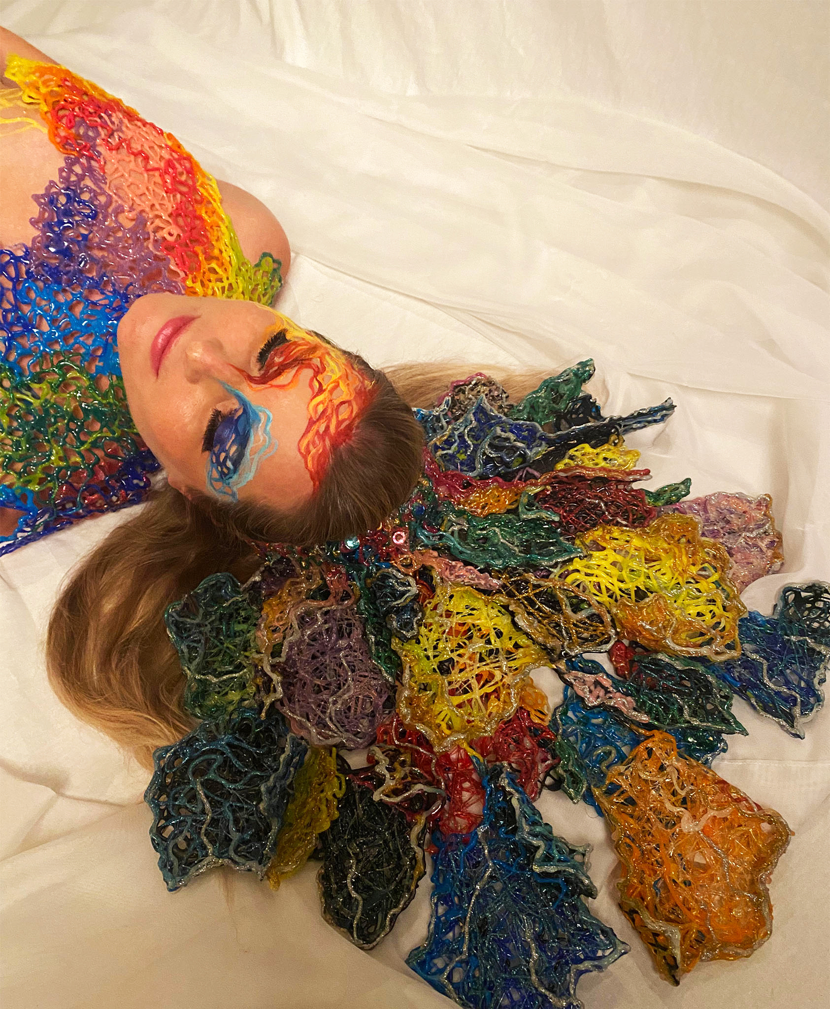 Currently she used her knowledge to design and make headpieces to accomplish her body art sessions.